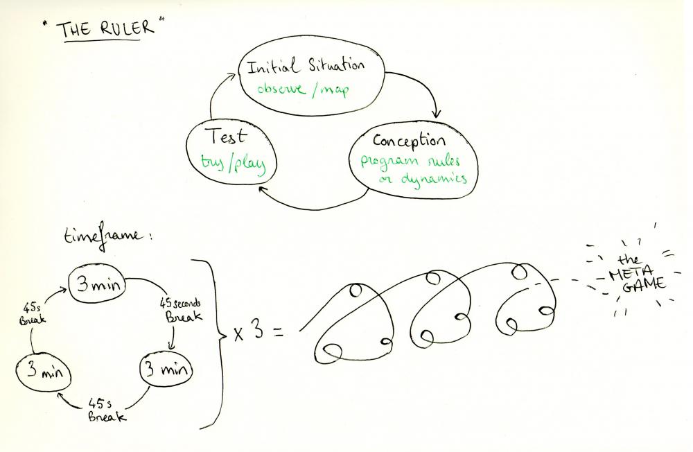 The meta-game, a game where the first rule is to invent the rules. A game that creates itself while playing it. The goal is always to recognize, communicate and agree on the game that we are currently playing. By doing so we want to reveal a dynamic structure that engages us in a playful way and can be applied to diverse contexts, mediums or formats.